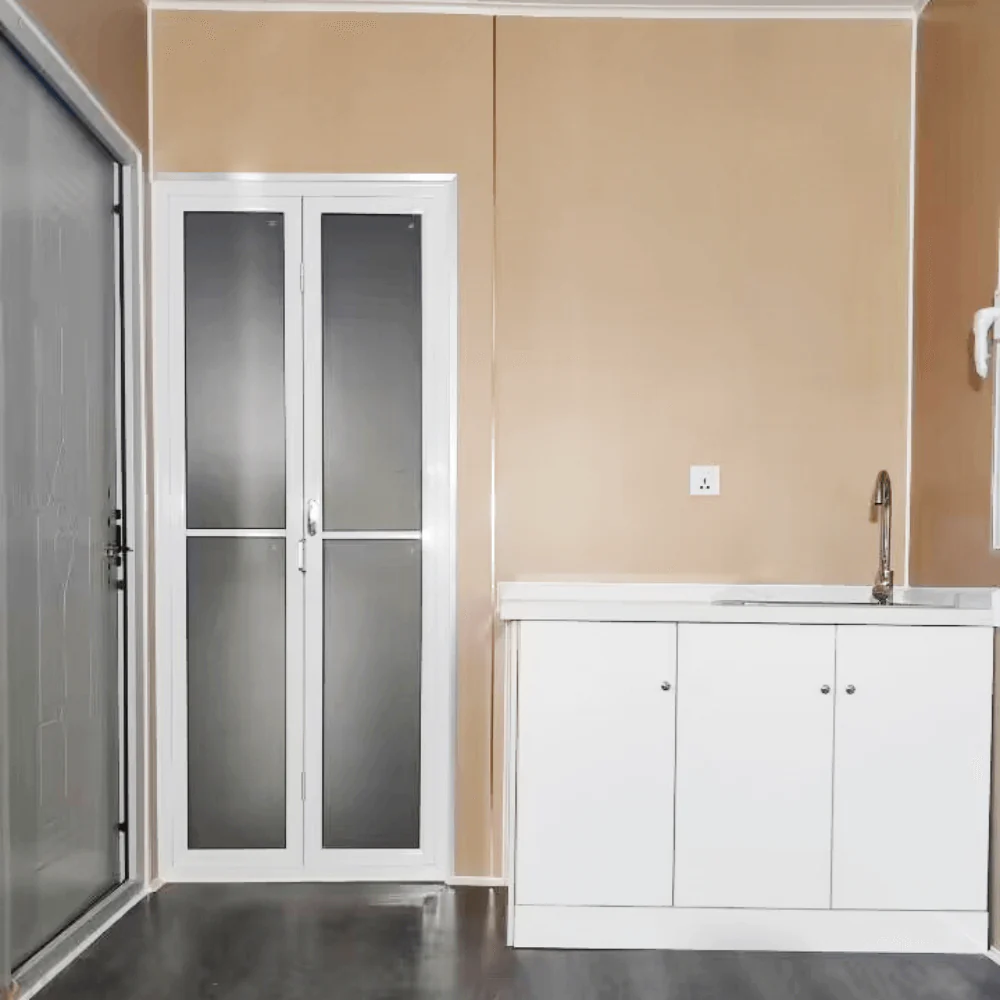 Experience modern living with our 40ft Container House featuring 2 bedrooms and 2 bathroom shower rooms. This innovative home is crafted from a 40HQ container steel structure, offering both durability and style. Each bedroom is designed for comfort, while the bathrooms provide convenience with fully-equipped shower rooms. The house also includes cabinets for ample storage, ensuring a clutter-free environment.